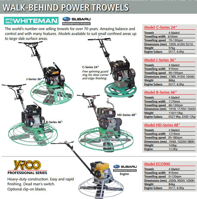 Amazing balance and control and with many features, the power trowel suits many areas, including small confined spaces up to large slab surface areas.